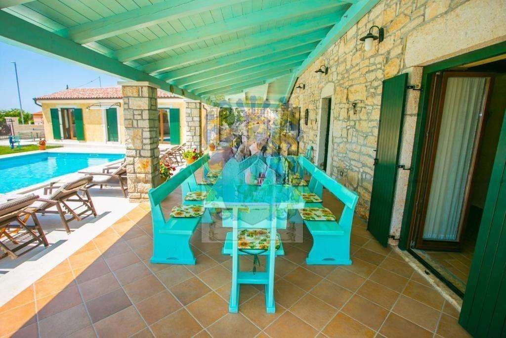 Istrian stone villa with pool for sale, built in 1930 but completely renovated. The house is located in a small Istrian village in a quiet location with open views of nature and greenery and is spread over two floors.