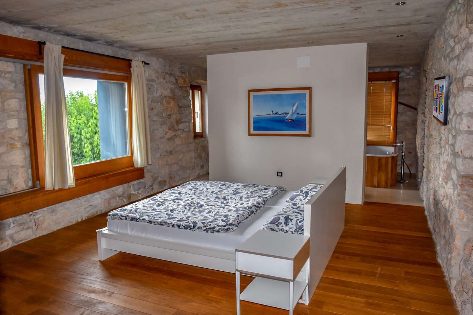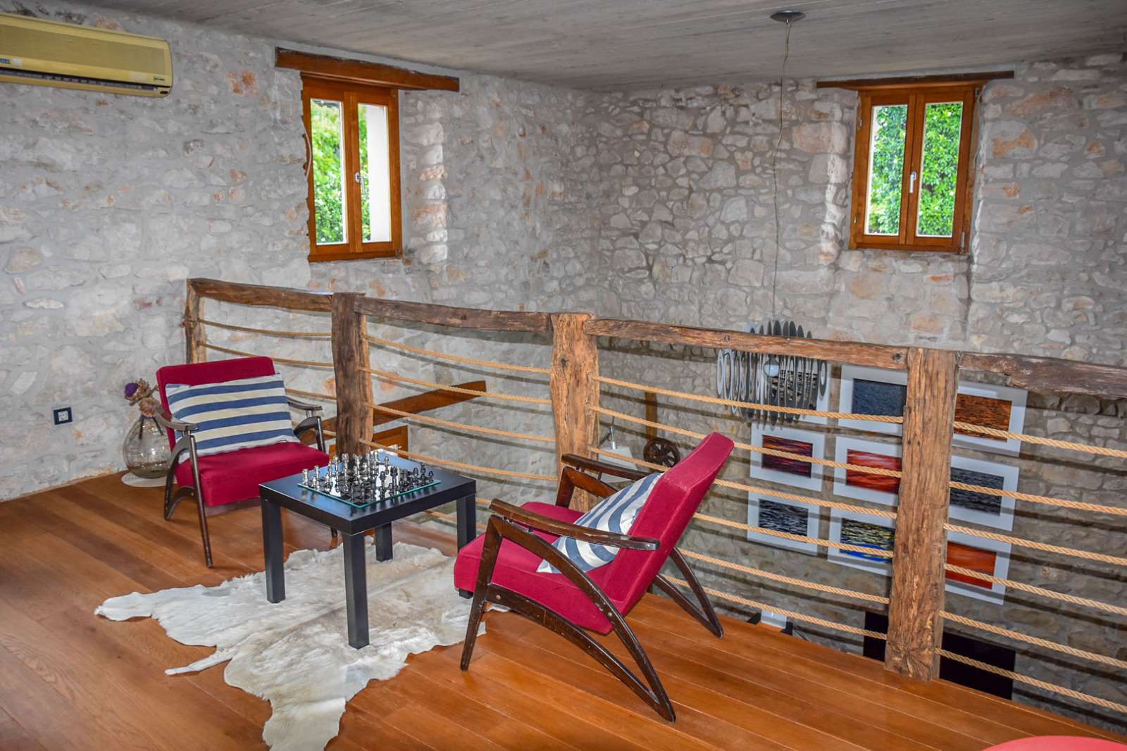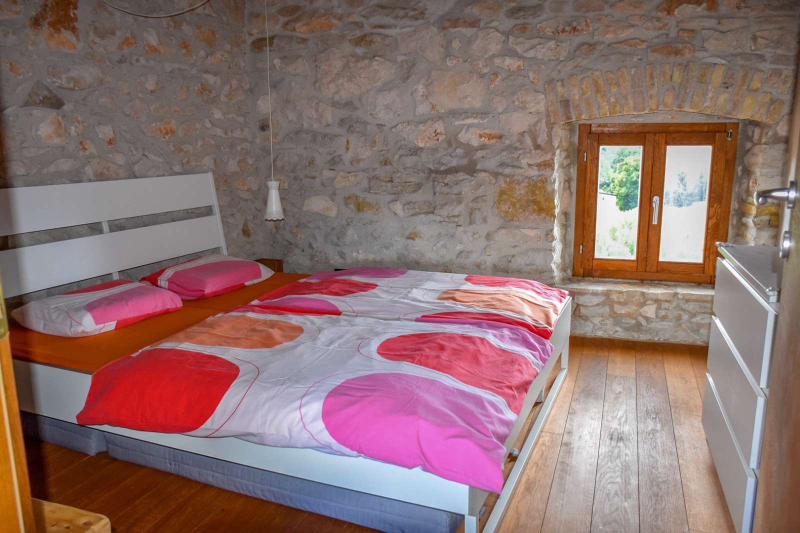 A stone house from 1818 with a swimming pool near Novigrad for sale. The house was renovated in 2011, and stone and wood were used in the renovation with a beautiful interior design. The house consists of a ground floor with storage, kitchen and living room. On the first and second floor there are 4 bedrooms and three bathrooms. In the yard there is a 44 m2 swimming pool and a summer kitchen, while all sauna installations are prepared.