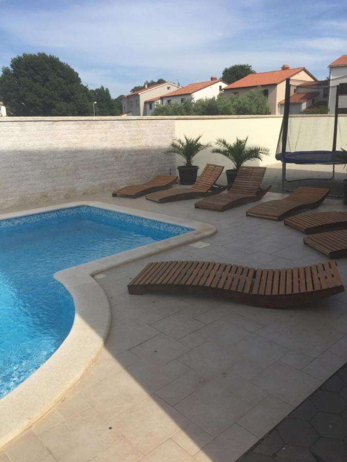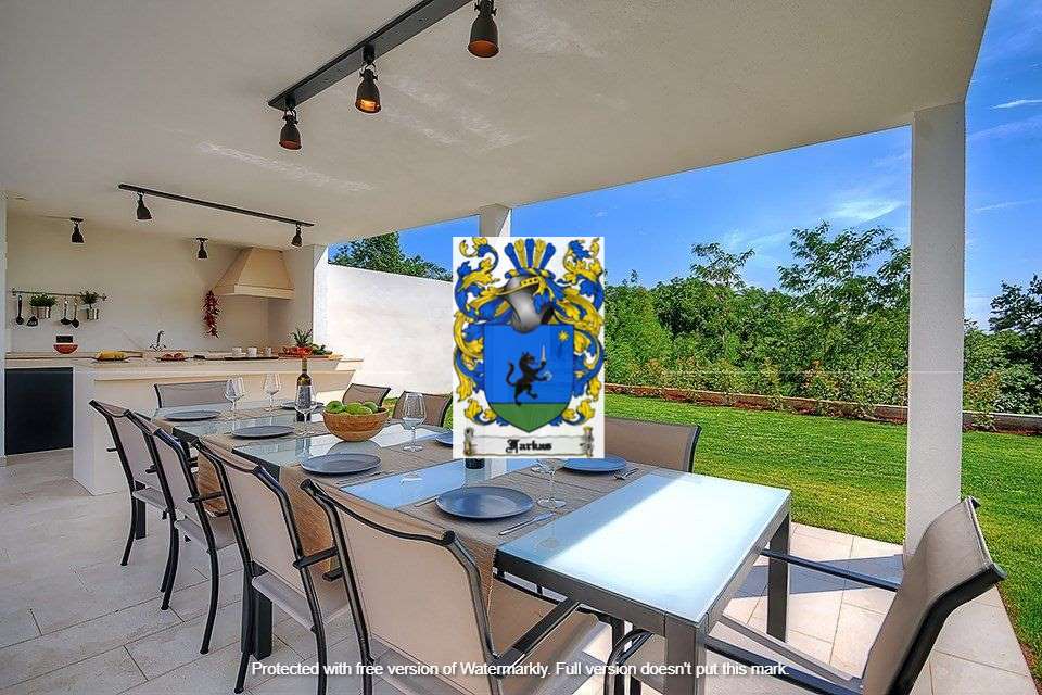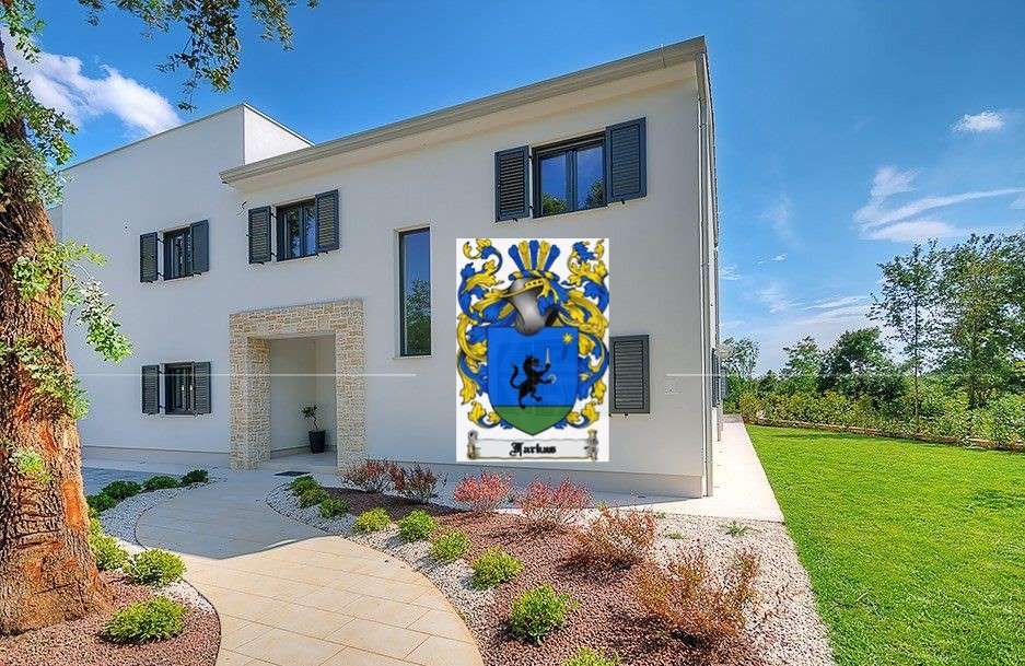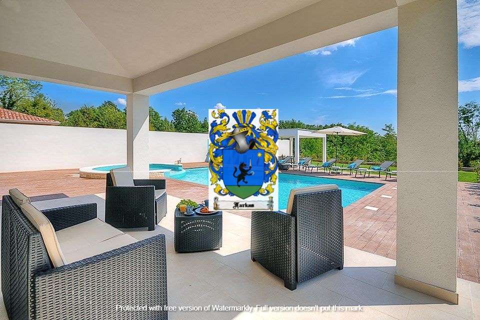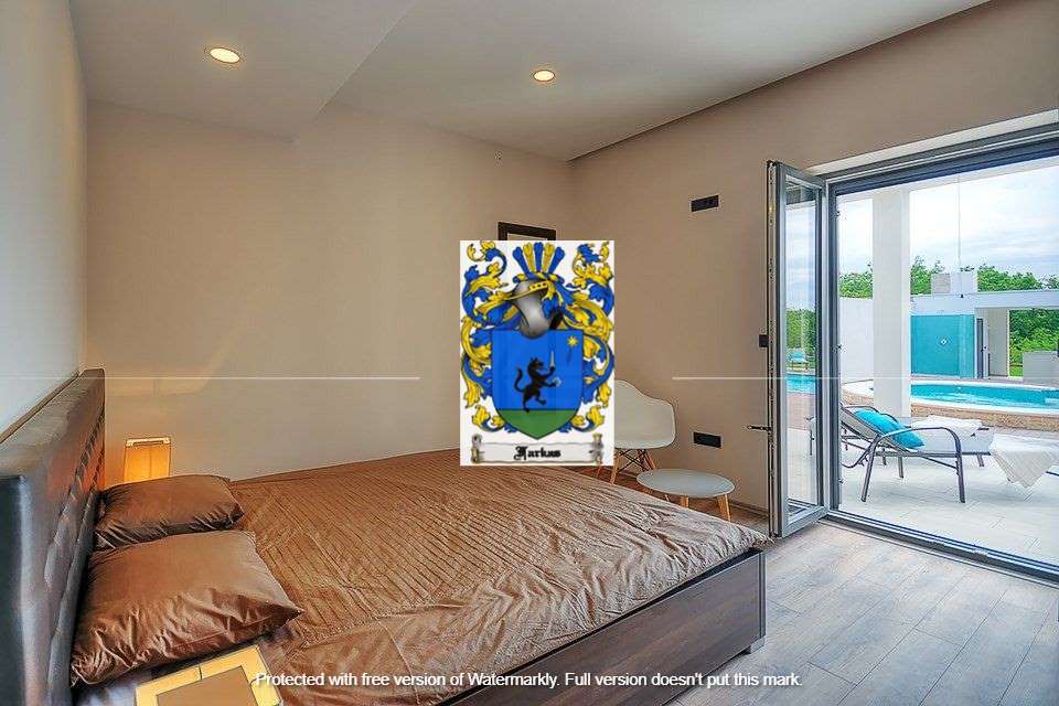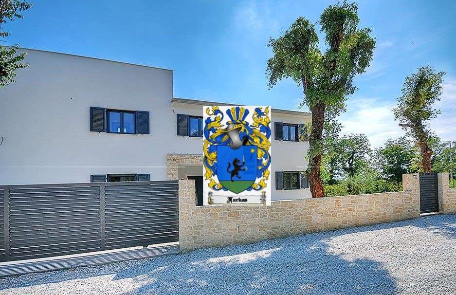 Modern design villa consisting of: living room, fully equipped kitchen with dining area, five bedrooms and four showers. A double hydromassage pool and an outdoor jacuzzi for four people are located on the villa’s large roof terrace, surrounded by a fully fenced minimalist green garden. The beautiful summer kitchen on the terrace, which has a gas grill and a pleasant outdoor dining area, gives an extra special note. The house is heated and cooled. The house is ready for sale with all furniture.