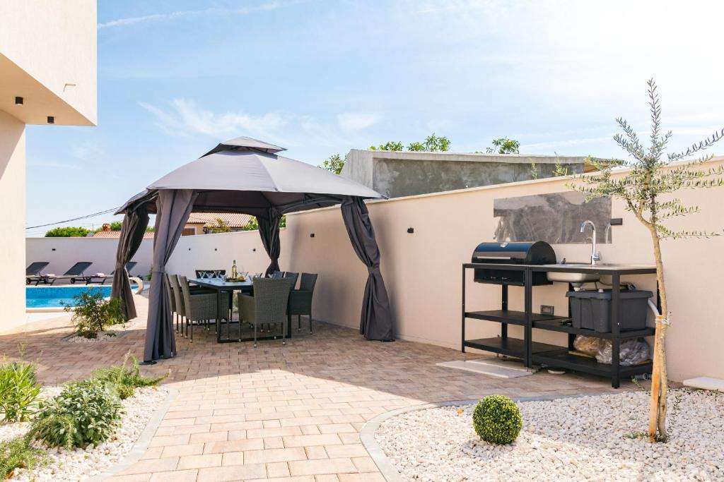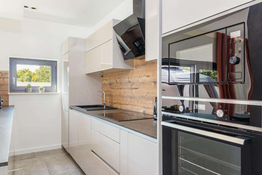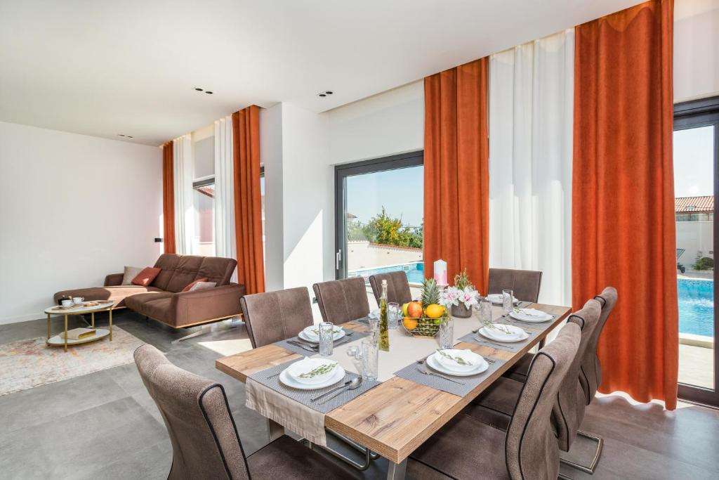 In a quiet place only 6 km from the center of Poreč and 3 km from the sea, there is this beautiful newly built modern semi-detached villa with a poo…