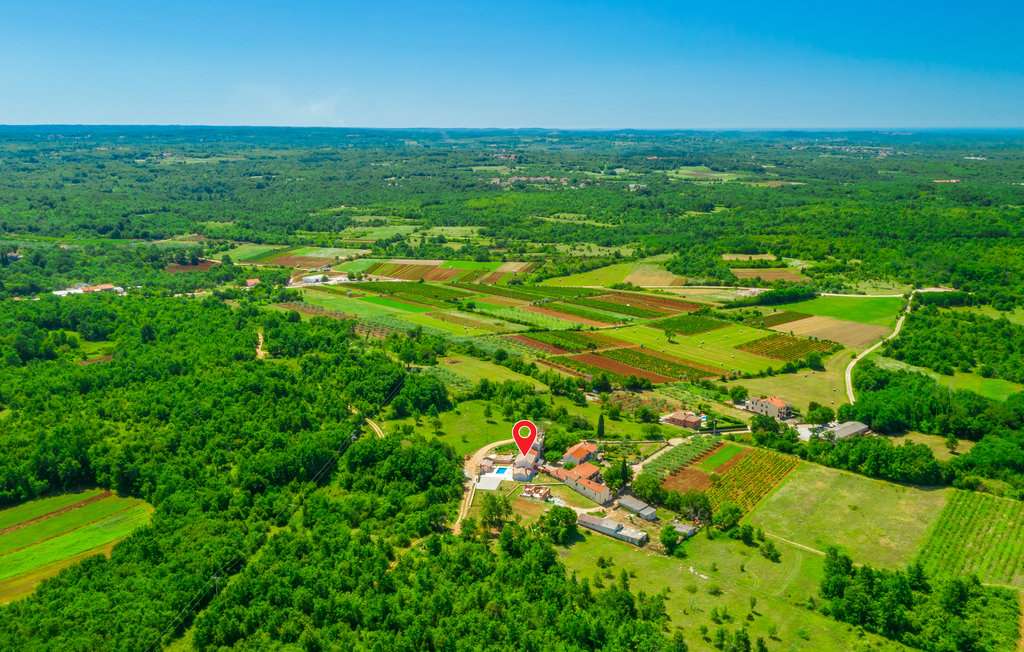 Stone house with swimming pool and summer kitchen on a spacious plot of 1000 m2 and 220 m2 living area. Poreč is 15 minutes away by car. There are two apartments in the house. The main house has an area of 150 square meters and is spread over two floors. We enter the house into a spacious living room with a brick fireplace, two bedrooms and one bathroom. The house also has a kitchen and a dining room.