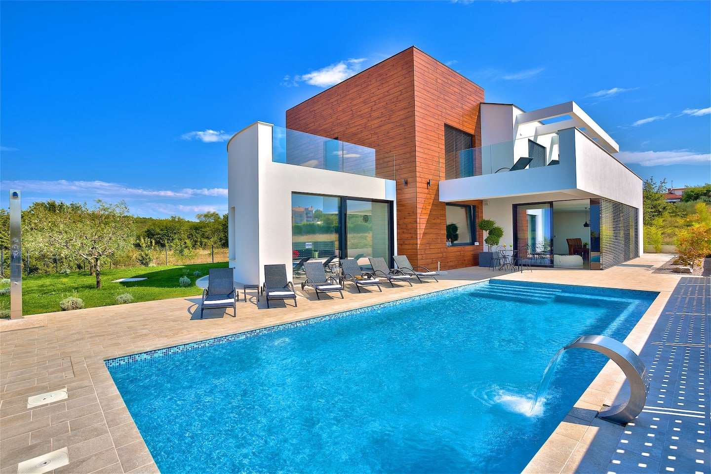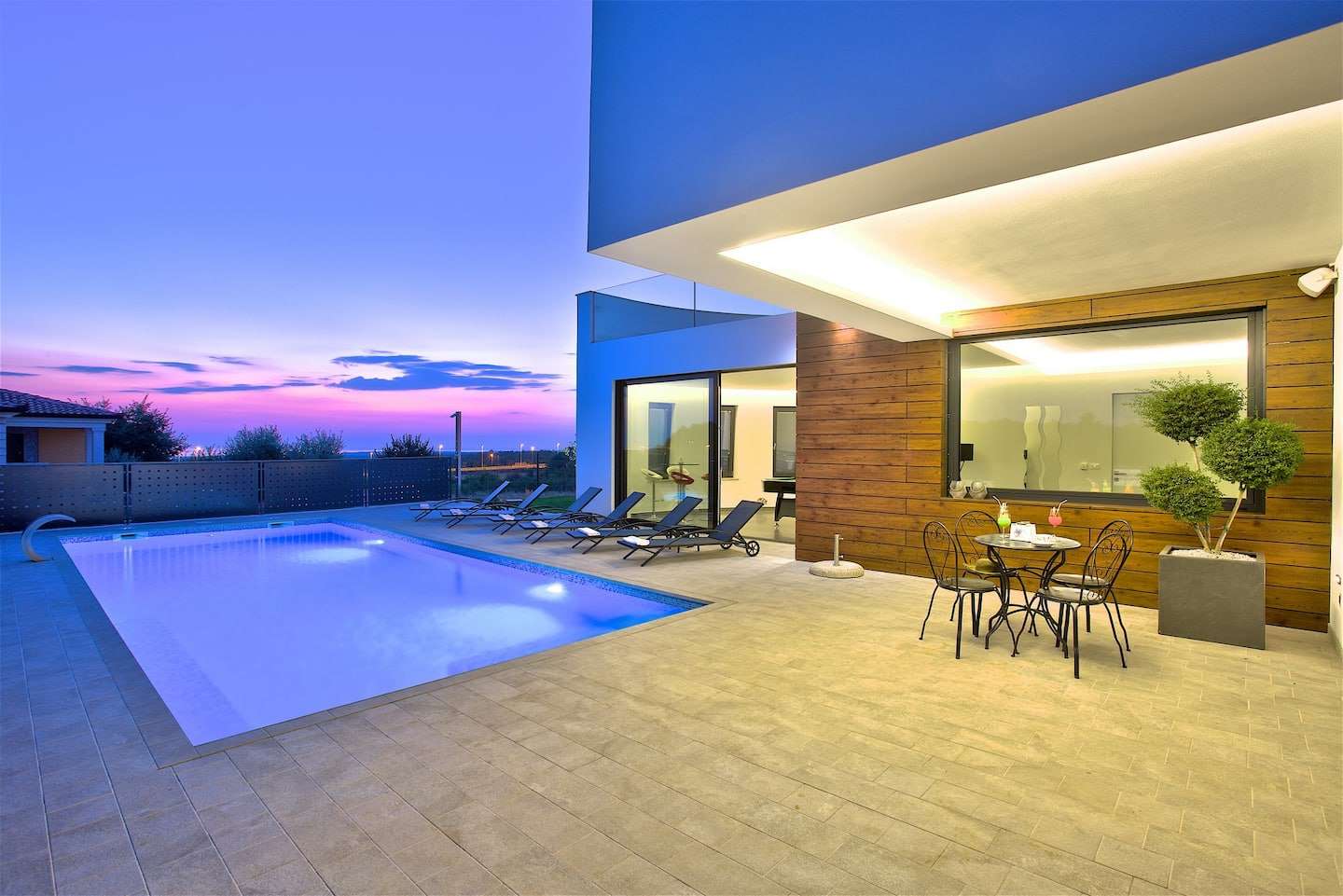A masterpiece of modern architecture, Villa Aria is equipped to provide a beautiful vacation in one of the loveliest Croatian regions, Istria. Located on a small hill, from the front side of the villa extends a glorious view at the sea and the lovely countryside.