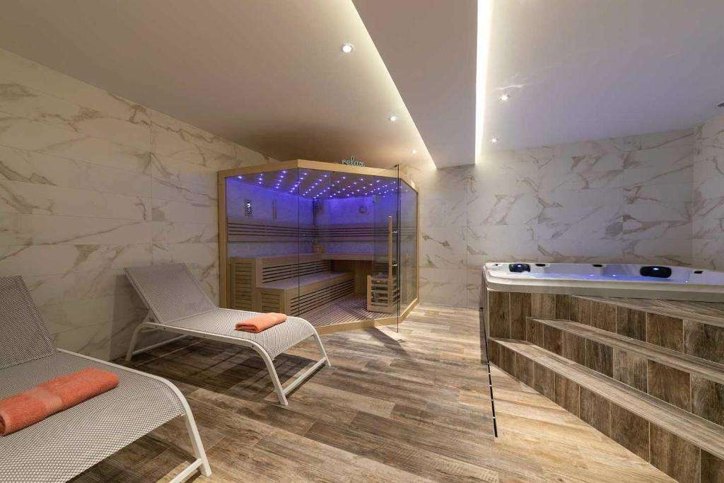 On the ground floor of the larger building, A living room, a kitchen, and a dining area are all included in this apartment, as are a bathroom and a separate bedroom. Three bedrooms, each with a bathroom, are located on the second floor. In addition, the basement has a leisure area, a masseuse, a hot tub, and a toilet.