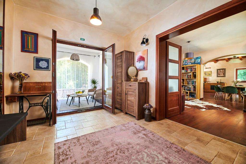 The house has a total area of 220m2 on a garden space of 1200 m2, which extends through the ground floor and first floor. 8000 m2 of woods.