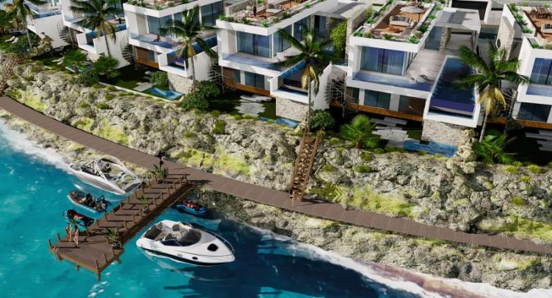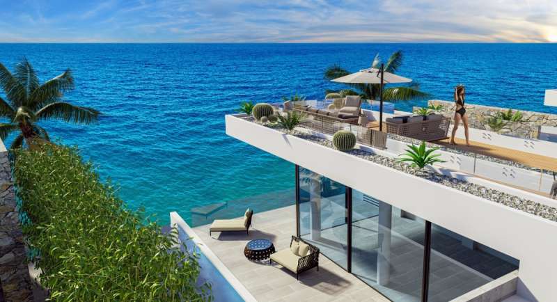 The 8 exclusive villas on the front facade are located on the edge of the rocky cliff, and when viewed from afar, they feel like they are on the sea. While the view of the villas from the private road at the back is a single-storey bungalow, the bedroom floors are actually located under the living areas and the pool at the road level. The roof terrace is the finishing touch with 360-degree sea and mountain views at the back, while the 3 en-suite bedrooms with walk-in closets open in front of the sea to a love garden with stunning sea views inside and out.