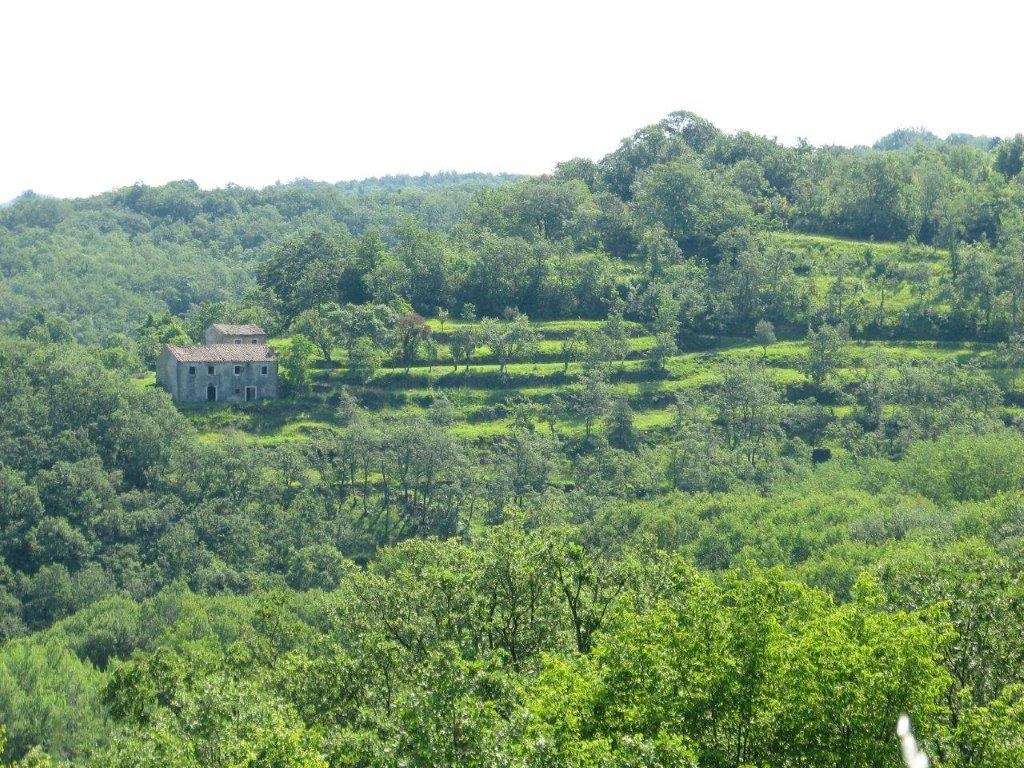 Beautiful land with a total area of 18,000 m2. 3.400 m2 building land with two old Istrian ruines and 14,600 m2 of agricultural land.