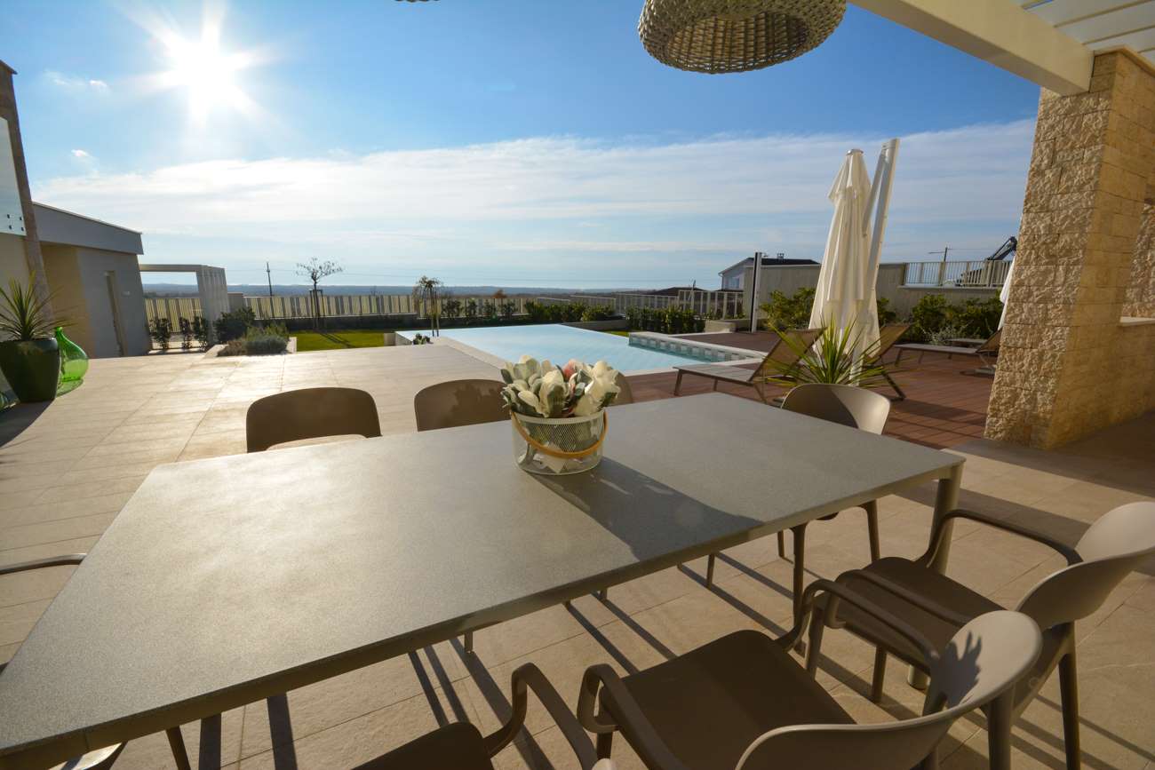 Beautiful 4 room villa for sale, with 3 bedrooms, 4 bathrooms, 1 toilet, i big size living room with kitcehn and dining room, indoor fire place, outdoor barbecue, heating and cooling system, swimming pool, 3 parking places Land area: 1145 m2 Horticulture Automatic irrigation Video + Alarm system Pool system Lighting system 248m2 + Pool 50m2